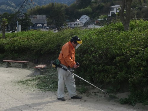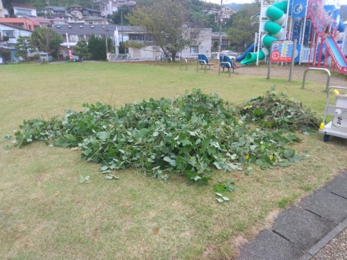 海沿い緑地のクズ刈取