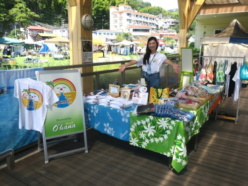 ウッドデッキではフラの小物やドレスの販売コーナーを、