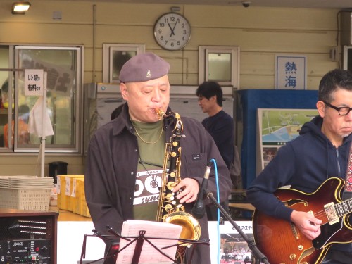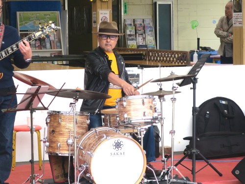 ステージ登場の切っ掛けは、伊東市出身のバンマス?「稲葉さん」がたまたま特設市を訪れたことからステージ出演に繋がりました。