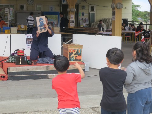 11/1(土)、霜月(前期)特設市初日のステージは「大道芸」のブラックマスク(黒子)さん。