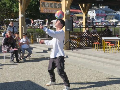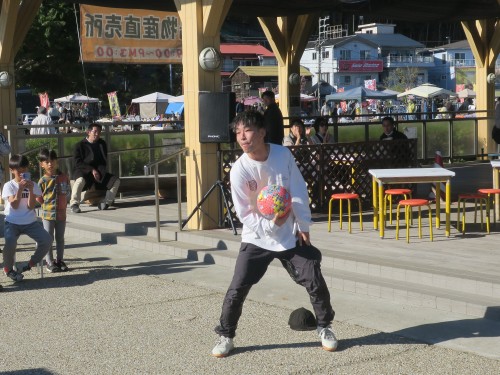 12/6(日)=師走(前期)特設市最終日、ながはま特設市では恒例のボールパフォーマンスはヒロケー君です。