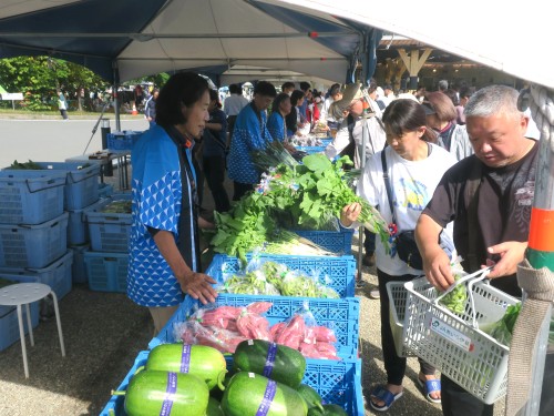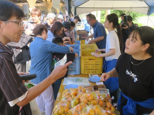 開始前から多くの来場者があり、みかんや野菜販売には列ができました。