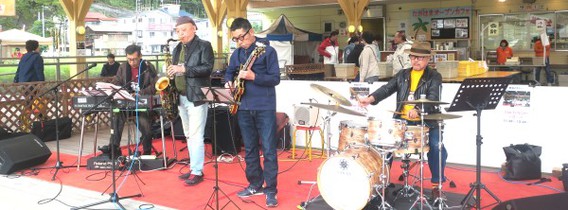 ステージ登場の切っ掛けは、伊東市出身のバンマス?「稲葉さん」がたまたま特設市を訪れたことからステージ出演に繋がりました。