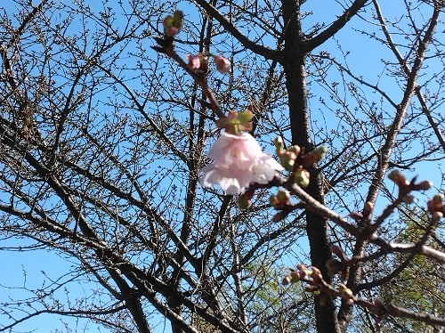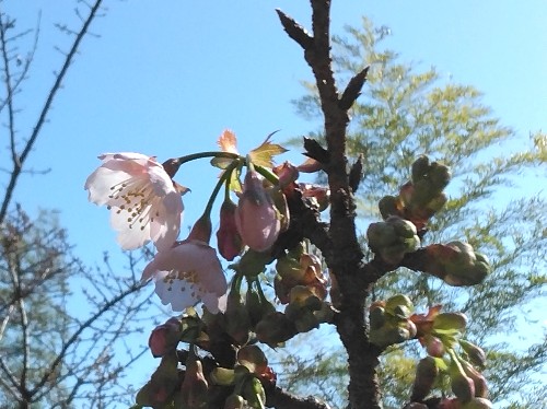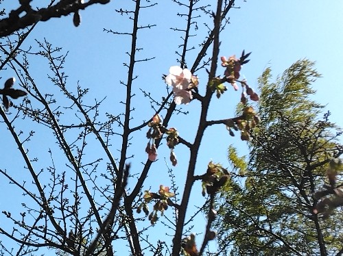 12/12に蕾の膨らみを確認した西側の日当たりのよい木の枝に複数の開花を確認しました。