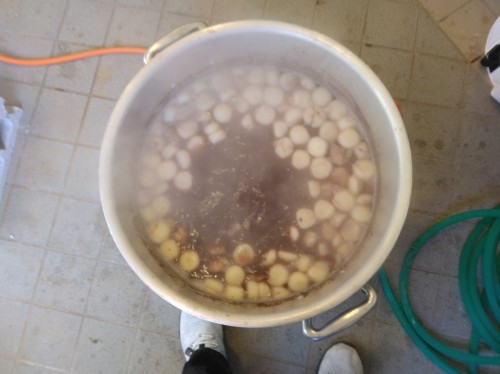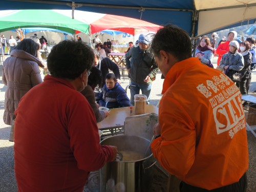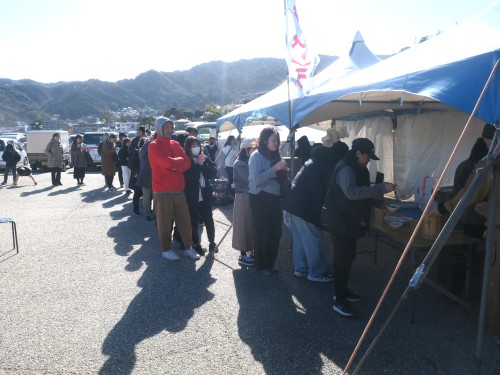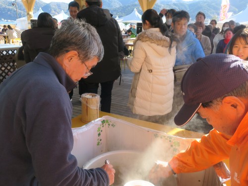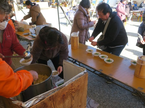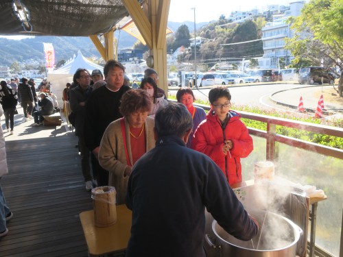 1/11に「猪鍋」、1/12に「お汁粉」の無料試食